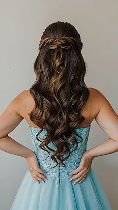 First up, we have the classic half up hairstyle. Picture this: half of that gorgeous hair elegantly pulled back, while the other half cascades down like a dreamy waterfall. It’s the perfect combination of sophistication and free spirit, especially when you add some loose curls for that effortlessly styled finish. Who knew you could look so put together while still being your fun-loving self?