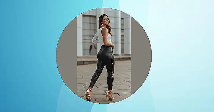 This outfit is totally giving us “boss lady” vibes! Those black leather pants with the gold detailing? Wowza! They’re like a fancy upgrade to your everyday jeans. And that white top? It’s a classic touch that lets the pants steal the show. It’s the perfect outfit to wear when you want to look put together but still feel comfortable and confident. Plus, those gold heels? They’re just the cherry on top! This outfit is perfect for a night out with friends, a fancy dinner, or even just walking around town feeling like a million bucks!