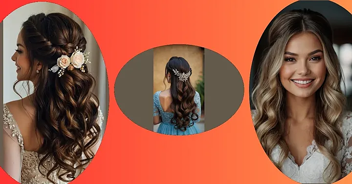 First up, let’s chat about the half-up hairstyles that always seem to steal the show. They’re not only easy but they’re perfect for showing off your gorgeous dress details. Whether you’re working with long, medium, or even short hair, you’ll find that a half-up style can be adapted for any length. It’s the best of both worlds; you get the romantic feel while still having your hair styled back!