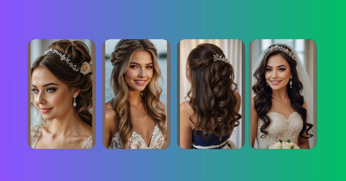 One of the hottest trends for this year is the half up half down hairstyle. Imagine lovely waves cascading down your shoulders, with just enough up to show off that dazzling accessory or veil. It’s the perfect balance between effortlessness and elegance, making it great for brides who want to keep things simple without sacrificing style.