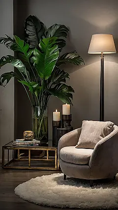 Want to make your living room the ultimate chill zone? Check out this setup! We’ve got a super comfy chair perfect for sinking into after a long day of school, and a fluffy rug that looks like you’re walking on a cloud. The lamp gives off a warm, cozy glow that’s way better than staring at your phone screen, trust us!