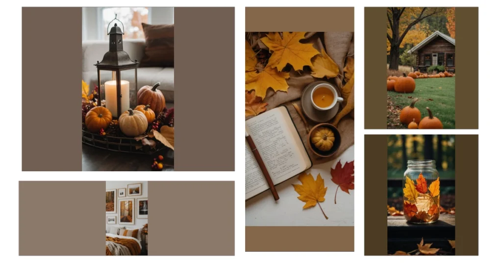 This image is like a Pinterest board come to life! It’s full of natural elements that make you think of fall – pumpkins, leaves, and a rustic candle. You could recreate this look in your own home by gathering up some things from nature like pinecones and leaves, and adding a touch of fall flair to your decor. It’s a simple way to bring the magic of fall indoors.