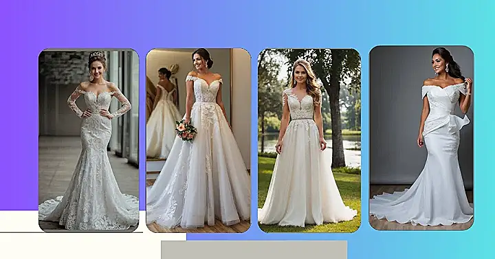 Picking the perfect wedding dress can feel like the hardest exam ever, but this off-the-shoulder style keeps things chic and simple. Imagine dancing the night away in this without worrying about a million layers of tulle! It’s the kind of dress that says, “I’m getting married, but I’m also still super cool and comfortable.” Now, go find your dream dress and get ready to party!