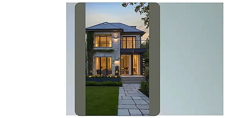 This house is giving major French vibes, like something straight out of a movie… except maybe one where a really cool detective lives. It’s got that classic stone look, but with a modern twist – like adding a balcony where you can dramatically overlook your perfectly manicured lawn and ponder life’s big questions (or just spy on your neighbors). It’s basically the French Riviera meets modern minimalism.