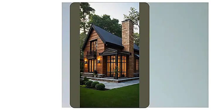This house is like the cool kid in school who secretly loves history. It’s got that classic cabin vibe with all the wood, but the huge windows and sleek black roof scream “modern update!” It’s basically a traditional house design but it went to finishing school and learned how to rock a catwalk. You can totally picture yourself sipping hot chocolate on that tiny balcony, plotting world domination, or just scrolling through TikTok.
