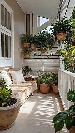 Forget stuffy formal gardens; this is all about relaxed charm. The mix of hanging plants, potted pals, and a super comfy-looking bench makes it feel totally chill. It’s proof that you don’t need a huge space to create a beautiful and peaceful spot, just a few green friends and a dash of sunshine. This is the kind of place where you could happily spend an afternoon with a good book, and honestly, who wouldn’t want that?
