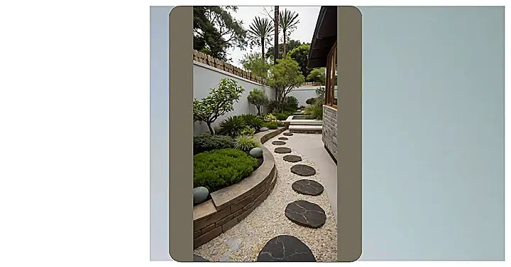Check out this place! It looks so peaceful, you can practically hear the crickets… or maybe someone ordering gelato. This garden has definitely mastered the art of looking effortlessly cool, kind of like that one friend who always looks good even when they just rolled out of bed. With those smooth stepping stones that look like giant, flat river rocks and the perfectly placed pebbles, it’s got a vibe that says “come relax here and maybe eat some really good bread.” It might not be a carbon copy of every garden in Rome, but it’s definitely channeling some fancy Italian courtyard garden energy.