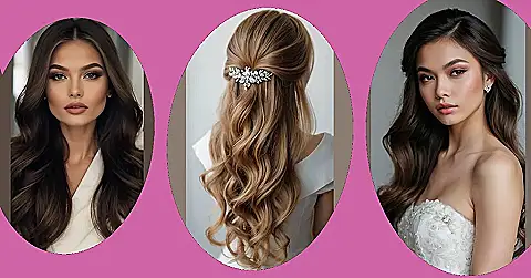 This hairstyle is like a fairytale come true! Imagine yourself walking down the aisle, hair flowing like a shimmering river of gorgeous curls. That sparkly clip? It’s like a tiny tiara for your beautiful locks. It’s the perfect blend of elegant and easygoing – you’ll look stunning, but you won’t have to spend hours getting ready. Seriously, who needs a prince when you’ve got hair this amazing?