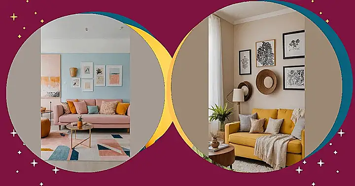 Forget stuffy furniture that looks like it belongs in a museum where nobody’s allowed to touch anything. This living room is basically throwing a colour party and everyone’s invited! Seriously, that pink couch is so cool, it probably has its own fan club. It’s like sitting on a cloud made of bubblegum dreams, surrounded by a squad of pillows that look like they raided a rainbow’s wardrobe. This is what happens when your living room decides to be fun instead of just… furniture-y.