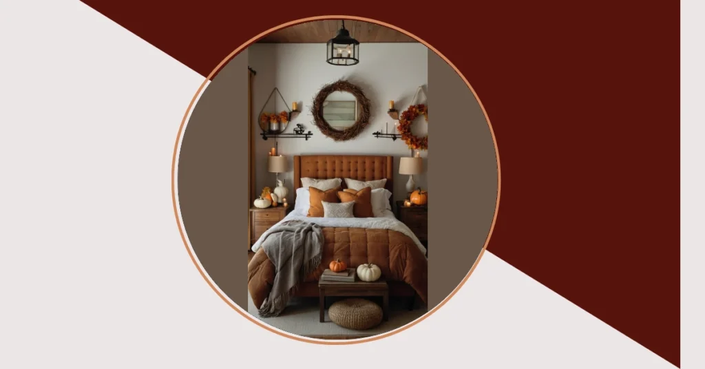 You could swap out your summer bedding for some nice fall-themed stuff, maybe add a few pumpkins or gourds on your nightstand, and even bring in some candles with a fall scent. Don’t forget about the little details, like a wreath or a cute fall-themed throw pillow! Just like the photo, you’ll end up with a room that feels like a warm hug on a chilly fall day. Let’s get cozy!