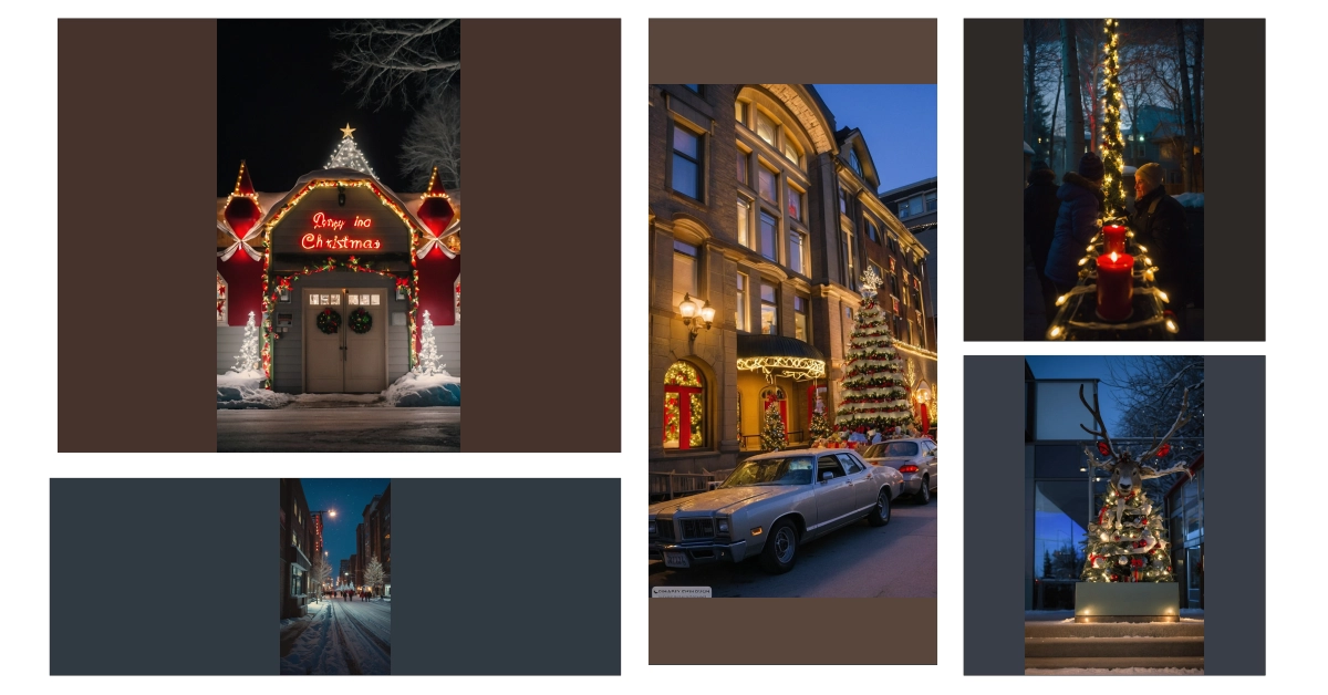 Imagine a cozy Canadian street, all decked out for Christmas. Snow softly falls, blanketing the houses in a sparkly white layer. String lights twinkle like festive fireflies, weaving between the houses, and a tiny Christmas tree bravely stands its ground near the end of the street, defying the chilly Canadian air. It’s like a scene from a Christmas movie, only way more charming and probably smelling a lot better than Hollywood sets ever can!