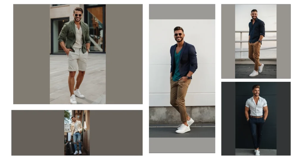 And don’t forget about those clean white sneakers! They add a touch of class to the whole look. This guy is proving that you don’t need to dress up in a suit to look sharp. He’s showing us that even a casual outfit can be stylish and comfortable. So, next time you’re thinking about your summer wardrobe, remember this guy: comfy, stylish, and ready for anything!