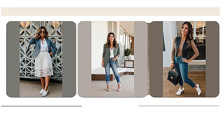 This mom is totally slaying the “cute mom outfits” game! She’s rocking a comfy, stylish blazer, a simple white tee, and classic black pants. It’s an outfit that’s perfect for running errands, taking the kids to soccer practice, or even grabbing coffee with your friends (because moms need to have fun too!). And those white sneakers? They add a touch of cool that lets everyone know you’re not just any mom – you’re a fashion-forward, awesome mom!