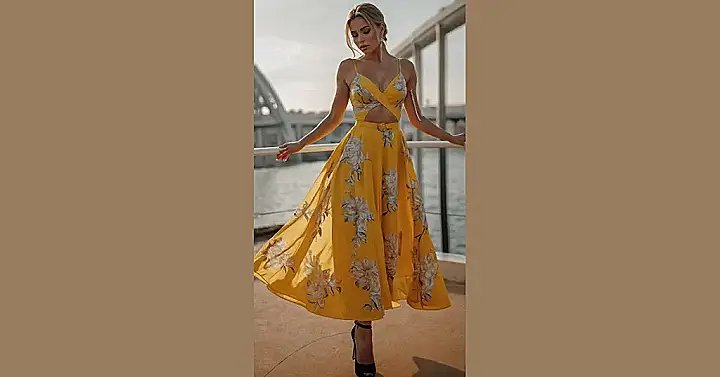 This yellow floral maxi dress is giving us major fall vibes! It’s like a warm hug on a crisp autumn day, and the floral pattern is perfect for adding a touch of whimsy to your outfit. Just imagine strolling through a pumpkin patch or cozying up by a bonfire in this beauty – you’ll be the queen of the fall season!