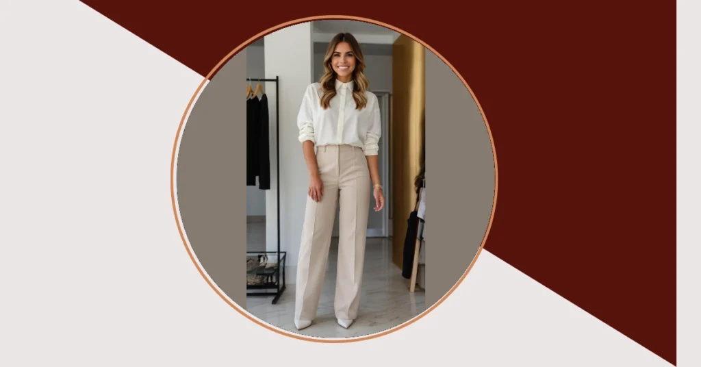 So, you want to look professional but secretly wish you were on a beach in Brazil doing the samba? Well, maybe this outfit is your answer! Picture yourself strutting into the office in these wide-leg pants and crisp white shirt – you’ll look like you mean business. But deep down, you’ll know your outfit has just a hint of “ready to break into dance at any moment” vibes.