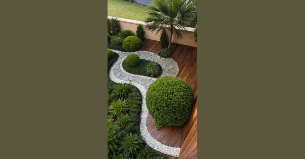 Using rocks in your landscaping like this is pretty genius too. Unlike fussy plants, these stone shapes won’t wilt if you forget they exist for a bit. They just sit there looking sharp, providing definition and style without demanding constant attention. It’s a fantastic way to make your outdoor space look modern and interesting while basically telling weeds and pests to find somewhere else to bother.
