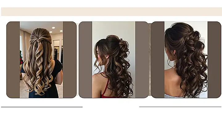 This hairstyle is seriously gorgeous! Imagine yourself as a bridesmaid, looking like a total princess with these luscious, curled locks. It’s the perfect blend of fancy and fun—elegant enough for a wedding, but relaxed enough that you can still dance the night away without worrying about your hair falling apart. Plus, that little sparkly hair clip? It’s the cherry on top of a seriously amazing sundae!