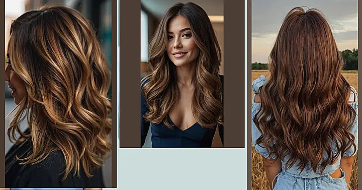 This hair color is like a warm hug on a crisp autumn day – think rich browns with subtle golden highlights, all flowing in those perfect, beachy waves. It’s like the hair version of pumpkin spice latte – sweet, warm, and totally ready to embrace the changing seasons.