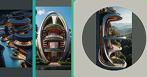 This building looks like it’s straight out of a sci-fi movie! It’s got all these cool curves and circles, and it’s almost like it’s a giant spaceship that landed in the middle of a jungle. It’s definitely futuristic architecture, but it also looks super comfy. Imagine waking up in one of those apartments and stepping out onto a balcony with a view like that!
