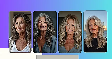 The picture shows a woman who’s rocking a hairstyle that’s totally on trend. It’s called “layered hair” because it has different lengths of hair, making it look super cool and stylish. And guess what? It works perfectly for anyone over 50!