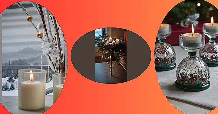 Imagine this: it’s a snowy Christmas Eve, and you’re snuggled up inside, watching the snowflakes dance outside your window. Two warm, inviting candles glow on your table, casting a magical light. It’s almost as cozy as a hug from Santa himself! And look – a snow-covered branch, decorated with tiny, shimmering ornaments, adds the perfect touch of winter wonderland charm to your Christmas candle holder display. It’s like a little piece of Christmas magic, right there on your table.