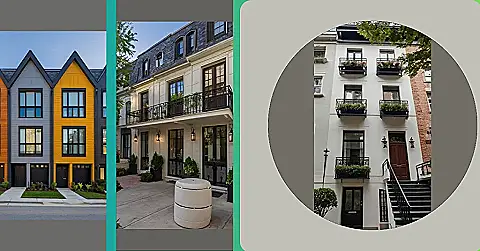 These townhouses are like a delicious slice of architectural cake! Look at that gorgeous brick and fancy stucco work – it’s like someone took a super stylish building and added sprinkles of elegance. Imagine living in one of these beauties, with your own little balcony perfect for sipping lemonade (or maybe something a little stronger when you’re older!). I bet the neighbours are just as charming as the buildings themselves.