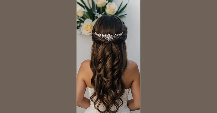 Bridesmaids, prepare for hair envy because this look is straight-up amazing! It’s like your hair went to finishing school and learned how to be elegant but still keep its cool-girl curls. Plus, that sparkly hairpiece is the perfect touch of bling without making you look like you raided a jewelry store. It’s cute, it’s classy, and it screams “I’m here to celebrate my friend, and look fabulous doing it!”