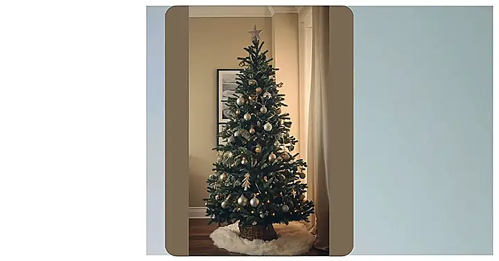 Seriously, look at that fluffy tree skirt! It’s like a cloud for your Christmas tree to snuggle in. It adds just the right amount of cozy without being overwhelming. This whole setup is super calming, like a winter wonderland in your living room. This isn’t your grandma’s Christmas tree (unless your grandma is a super cool minimalist); it’s fresh, modern, and utterly delightful. Plus, the warm lights make the whole thing feel extra magical and festive. Who needs a lot of fuss when you can have a totally stunning tree with just a few simple touches?
