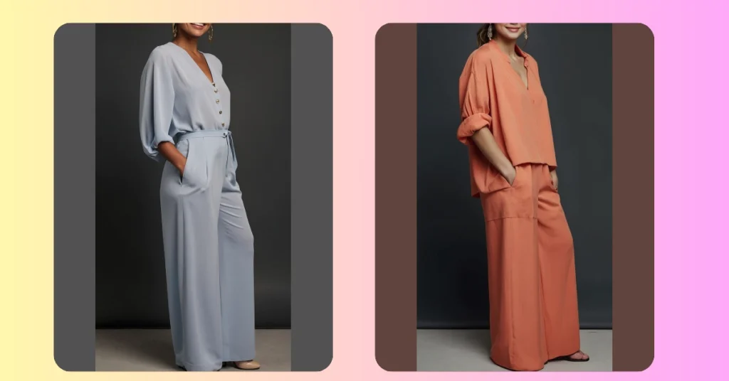 This peachy-keen outfit is perfect for middle-aged women who want to look stylish *and* feel like they’re lounging on a beach in the Bahamas (minus the sand in your shoes, of course!). The wide-leg pants are comfy enough for a marathon Netflix binge, and the loose top is so breezy, you could wear it while chasing after your grandkids… or maybe just chasing after that last slice of pizza. Seriously, imagine how many pockets you could fill with snacks!