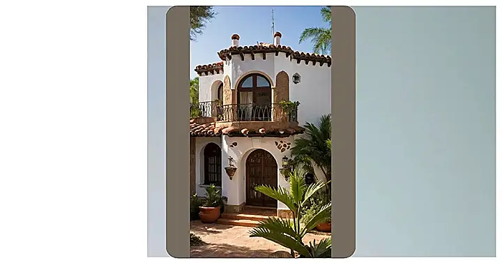 This adorable Spanish-style home is like something straight out of a storybook! Imagine sipping lemonade on that charming balcony, feeling the warm sun on your face, and pretending you’re a Spanish princess or prince (with maybe a slightly more modern bathroom). It’s small but perfectly formed, with enough space for cozy family dinners and maybe even a tiny fiesta! The terracotta roof tiles and the warm colors of the walls make you feel like you’ve stepped into a postcard, a little pocket of Spain nestled somewhere sunny and wonderful.
