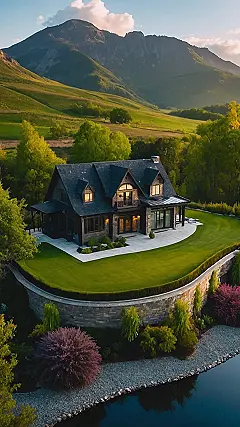 This house is so fancy, it’s basically a mini-castle perched on a hill! Just imagine waking up every morning to breathtaking views of those majestic mountains. You wouldn’t even need to set an alarm, the sunshine would just peek over the peaks and say “Good morning!” Plus, you could totally have your own secret garden in that beautiful green space, complete with a secret entrance through the stone wall!