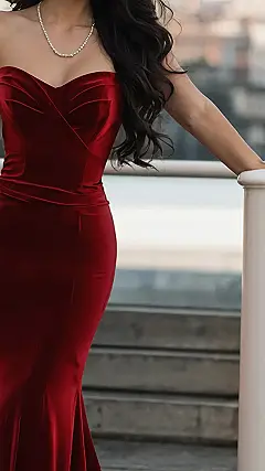 This amazing red velvet gown is the perfect mix of fancy and fun. It’s got that classic elegance you need for a special event, but with a modern twist that’s totally you. Forget awkwardly fumbling with straps or worrying about whether your outfit will survive a dance-off; this beauty will keep you looking amazing and feeling comfortable all night long. Plus, who needs a sparkly tiara when you’ve got that much fabulousness in one dress?