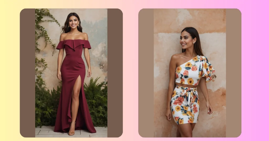 Check out this dress, y’all! It’s giving major fancy vibes, like you’re ready to sashay into any party and make heads turn. That off-the-shoulder style and the dramatic slit are basically saying, “I didn’t just show up, I *arrived*.” Forget blending in; this maroon masterpiece is all about standing out and looking fabulous, whether you’re hitting the dance floor or just striking a pose for the ‘gram. It’s got that perfect mix of elegant and daring, ready for whatever fun the night throws your way.