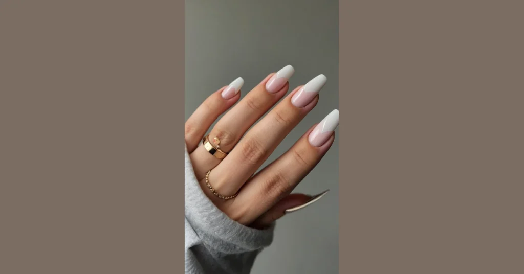 These nails are so pretty, they’re practically begging to be shown off! Imagine strolling through a winter wonderland, snowflakes gently falling, and your fingers sporting these gorgeous, soft, creamy nails with delicate gold accents. They’re like a mini-celebration for your hands – all warm and cozy, ready to hold a hot cocoa or snuggle up in a fluffy sweater. Who needs diamonds when you’ve got this kind of nail art?