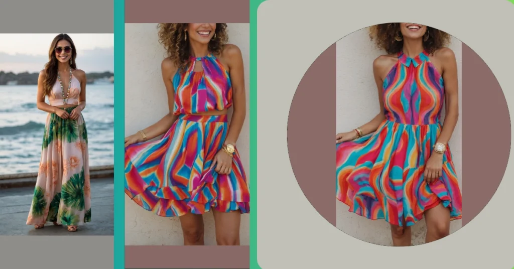 This dress is basically a party exploded onto fabric! Look at all those wild colors swirling around – pink, orange, blue, purple, yellow, it’s like a rainbow got dizzy and decided to land on an outfit. Wearing this would make you feel like you could instantly break into a happy dance, even if your only move is the sprinkler. It’s the perfect outfit to show up to any fiesta and automatically look like you brought all the fun with you. You might even need a chaperone just for the energy this dress gives off!
