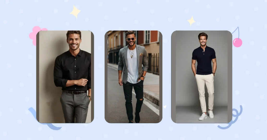 This guy is rocking the classic men’s clothing style, and he’s got that “I woke up like this” kind of confidence. Black button-down shirt? Check! Gray slacks? Check! Perfect smile and killer hair? Triple check! This look is timeless because it’s simple, clean, and just plain cool. You can wear it to a job interview, a date, or even just a hangout with friends – it always works.