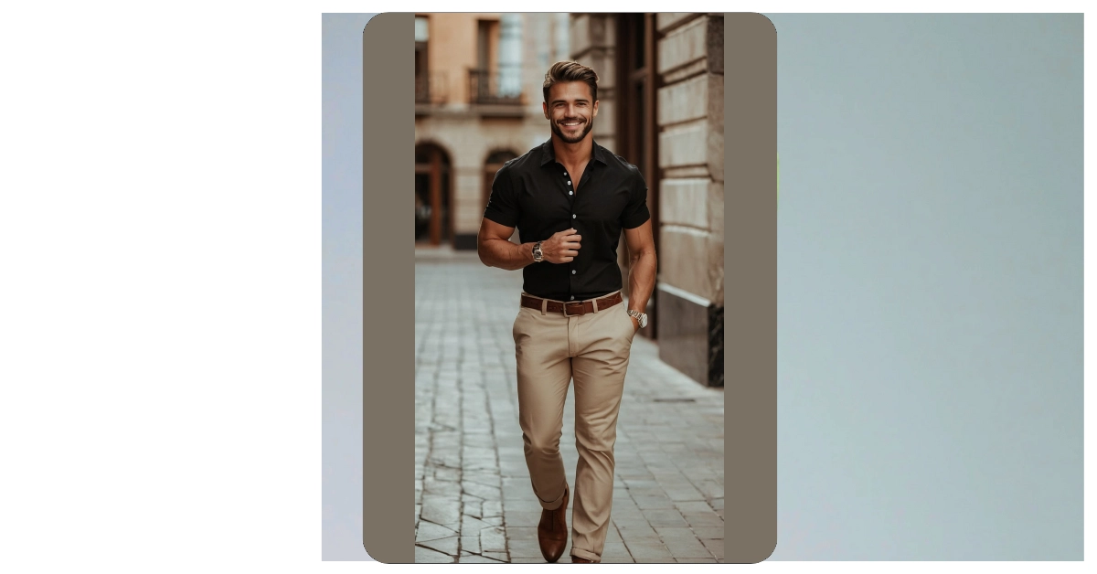 So, you want to look like you stepped out of a movie…a classic movie, that is! Check out this dude rocking the effortlessly cool black shirt and khaki pants combo. It’s like James Dean meets modern day, and the result is an outfit that’s perfect for anything from grabbing a coffee to impressing on a first date. The secret is in the details: a good belt, sharp shoes, and a watch that screams, “I’ve got this!”
