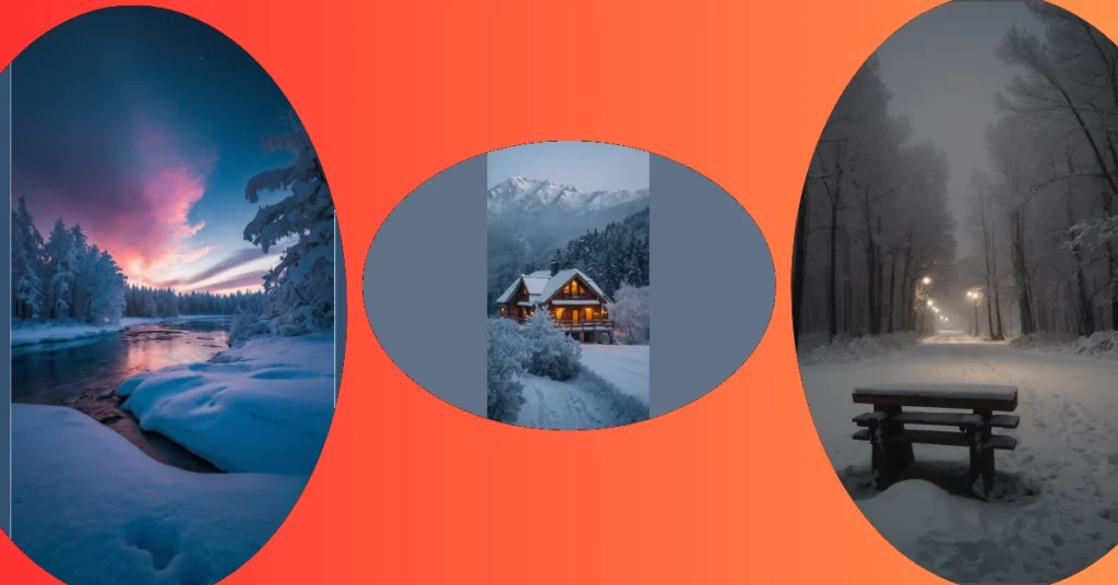 Seriously though, this place looks straight out of a storybook. Imagine waking up here, grabbing a snowball, and launching it at your friend’s window (but maybe don’t actually do that!). The way the sky is all colorful and the snow is sparkling makes you want to put on your warmest sweater and just wander around, soaking up the winter magic. It’s totally the kind of place where you’d expect to see Santa’s sleigh parked just around the corner.