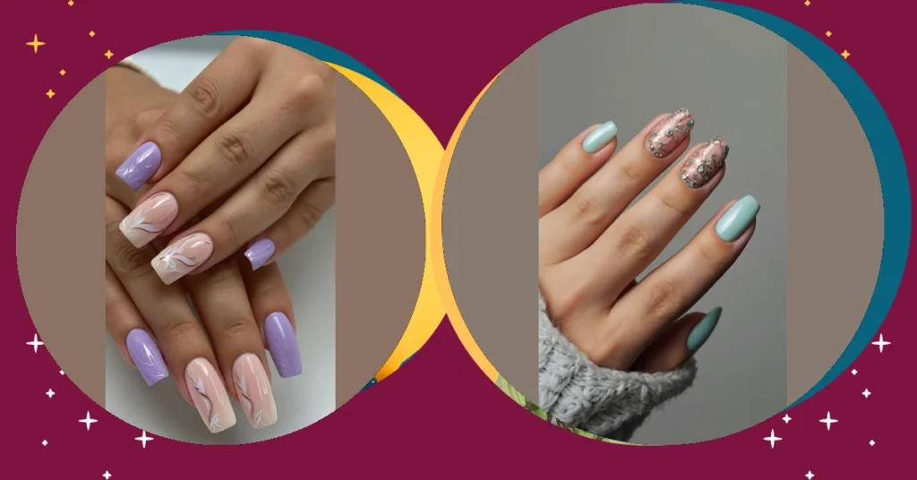 Seriously though, these nails are goals. They prove you don’t need a million different colors and add-ons to make a statement. The soft colors and gold accents make them look super classy, like you’re about to attend a royal tea party or just slay at your next group project. You can keep it simple but elevate your look.