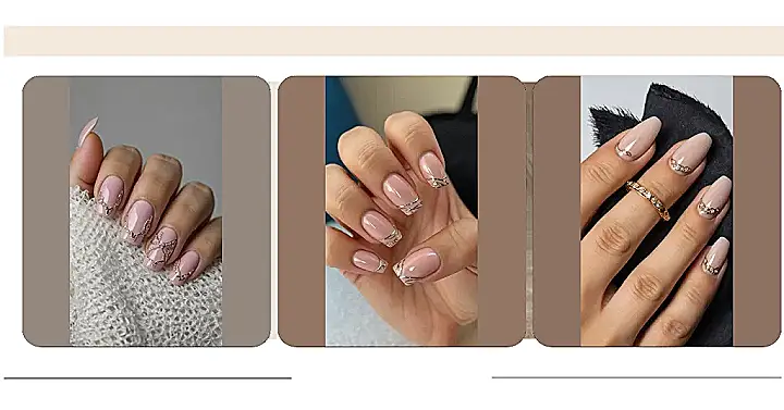 You know the classic French tip nails, right? The ones with the white line across the very top? Well, the nails in this picture looked at that idea and said “hold my croissant!” Instead of the tip, they put the fancy party right at the base of the nail, near your cuticle! See that gorgeous pink color with the shiny gold lines and even a cool little design on one finger? It’s like they decided the nail roots needed some bling, turning the whole concept on its head in the most glamorous way possible.