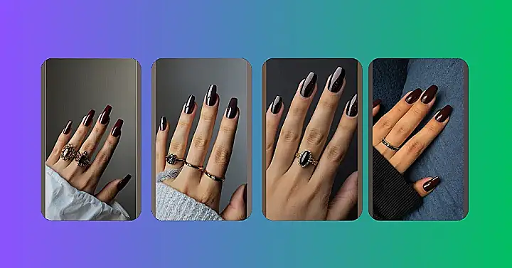 And those rings! They’re like a little bit of sparkle in a dark, mysterious world. Imagine strolling through a fall festival, crunching leaves under your feet, and your rings catch the light of a nearby bonfire. The combination of the dark nails and the sparkling rings is like the perfect fall outfit ‚Äì it’s chic, elegant, and just a little bit edgy. Now that’s what I call a winning look!