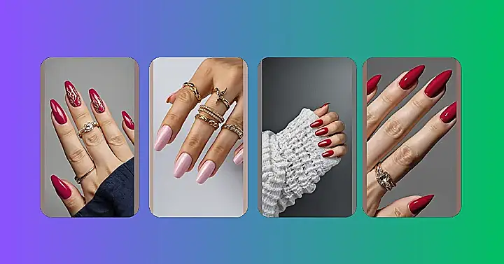 Check out these nails! That deep berry red is screaming ‘summer fun’ right from your fingertips. They look so shiny and ready for anything, whether you’re hitting the beach, hanging out with friends, or just trying to pick up that one stubborn chip without breaking a nail (we’ve all been there!). And those sparkly rings just make the whole look pop, proving that even your hands can get dressed up for the season. These nails are basically tiny summer party hats for your fingers!