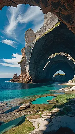 The coastline unfurls like a living tapestry, where the dance between crashing waves and rugged rocks occurs in mesmerizing harmony. Each swell rolls in with a fervent passion, eager to embrace the shore, only to retreat back into the depths with a sigh, leaving behind a fleeting whisper of foam and salt. The jagged silhouettes of cliffs stand sentinel, their surfaces coated with the remnants of countless tides, each telling stories of time spent in the embrace of relentless waters. The air fills with the briny scent of the ocean, invigorating the senses, while gulls cry out, an anthem of freedom that complements the symphony of the sea.