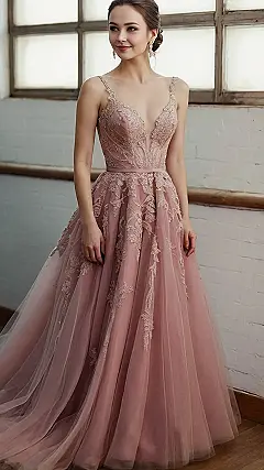 Seriously, this dress is giving us major princess vibes. The delicate lace details add a touch of sophistication, while the soft pink color is perfect for a romantic wedding. It’s like a hug of tulle and lace, all in the most beautiful shade of rose. With a dress this amazing, saying “I do” will be even more unforgettable.