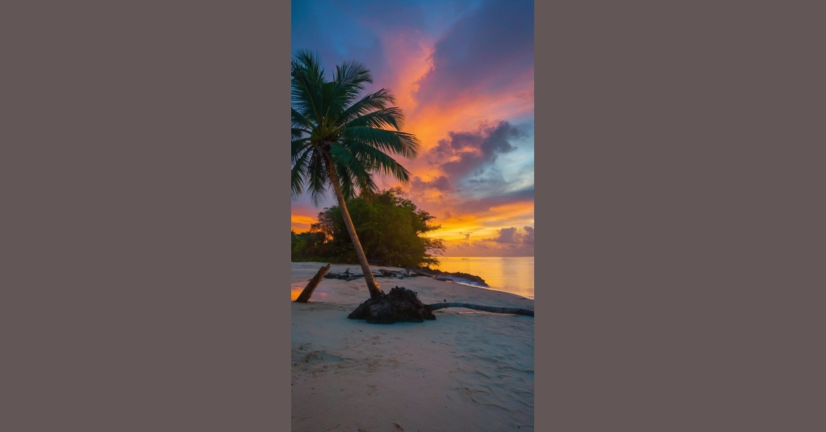 That palm tree is working harder than my alarm clock on a Monday morning, holding up those chill vibes like a boss. It’s the perfect mix of peaceful beach and crazy-awesome sunset, making it a photographer’s dream. If this was a pizza, it would be Hawaiian – a bit controversial, but you know you secretly love it.