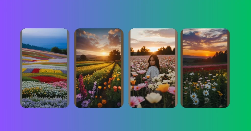 Imagine walking through this flower field, trying to find the perfect angle for your Insta post! Good luck choosing just one flower for a selfie, though. It’s like trying to pick your favourite flavour of ice cream when they all look amazing. You’d probably end up taking a hundred photos and still not being able to decide which one is the best to share with your friends.