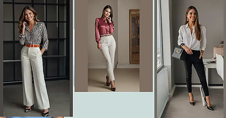 Thinking about what to wear to the office this spring? Check out this look! It’s like a secret weapon for crushing presentations and looking super stylish. The crisp white shirt and tailored black pants combo is a classic that never fails. You could even add a pop of color with a cool scarf or some bright shoes if you’re feeling extra bold.