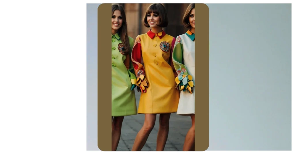 Imagine rocking these outfits at a party with a live band. The music is pumping, everyone’s dancing, and you’re feeling confident and fabulous! The bright colors and interesting patterns make you stand out and feel like you’re part of something exciting. They’re not afraid to show off their unique style and personality, and they’re definitely making a splash in the fashion scene. This picture is giving us major #sixtiesfashion goals!
