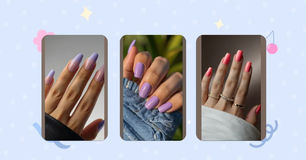 Those nails are screaming “spring break!” It’s like the tips took a dip in a lavender dream. The faded colour makes it look like a sunset on your hands. You’ll be rocking these gradient nails at the pool, the mall, or even just chilling at home. Who needs sunshine when your fingertips are already that bright?