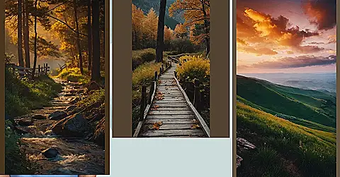 This picture looks like a scene straight out of a fairytale! A rickety wooden bridge winds its way through a forest of golden leaves, all surrounded by a carpet of autumn colors. It’s like the bridge is whispering, “Come on in, let’s explore!” I bet those leaves are crunchy underfoot, and you could hear the sound of squirrels scampering in the trees above.